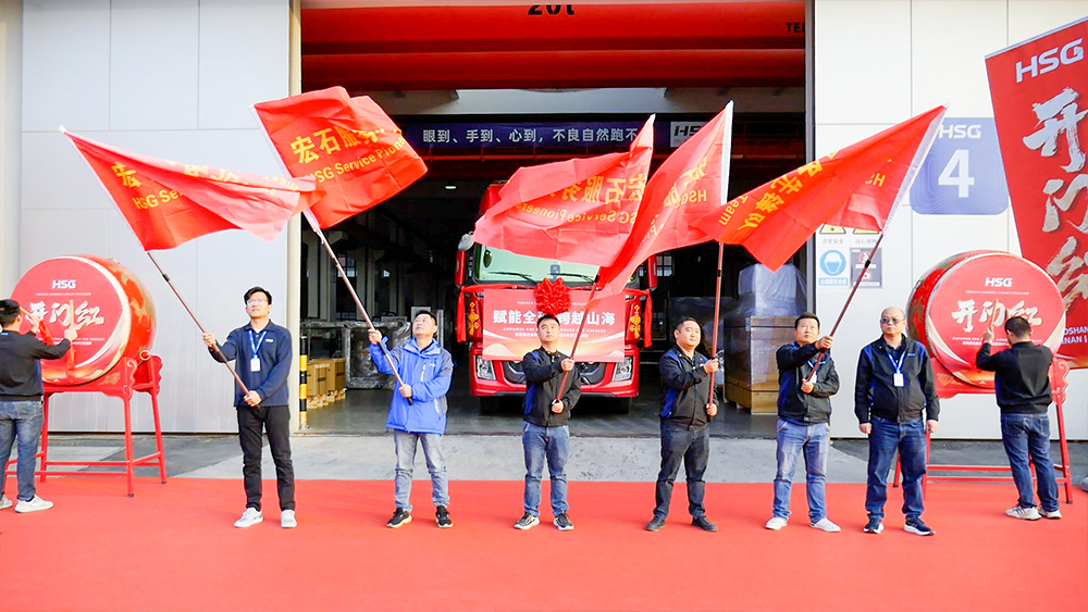 活動主會場設(shè)在佛山總部,整裝待發(fā)的運輸車輛整齊列陣,伴隨著激昂的音樂聲,禮炮齊鳴,發(fā)運車一馬當先,新一年的奮進激情被點燃。與此同時,蘇州、濟南及泰國基地同步舉行發(fā)車儀式,集中交付多批暢銷設(shè)備,展示了宏石激光強大的生產(chǎn)制造與高效交付能力,也全方位展現(xiàn)出公司穩(wěn)健運營、逆勢增長的良好態(tài)勢。