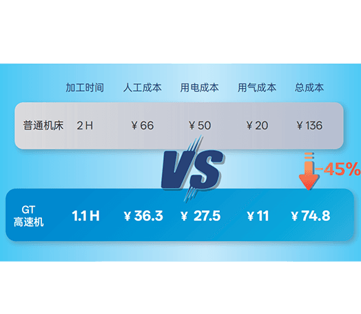 瞬時進入高速切割狀態,全程穩定輸出,單位時間產出大幅提升,訂單比同行快 45% 完成,交付周期縮短、接單能力升級,有效攤薄人工與場地成本。